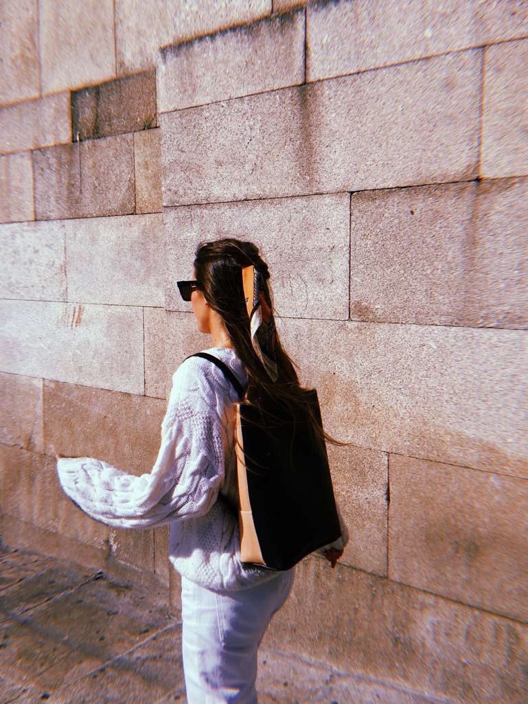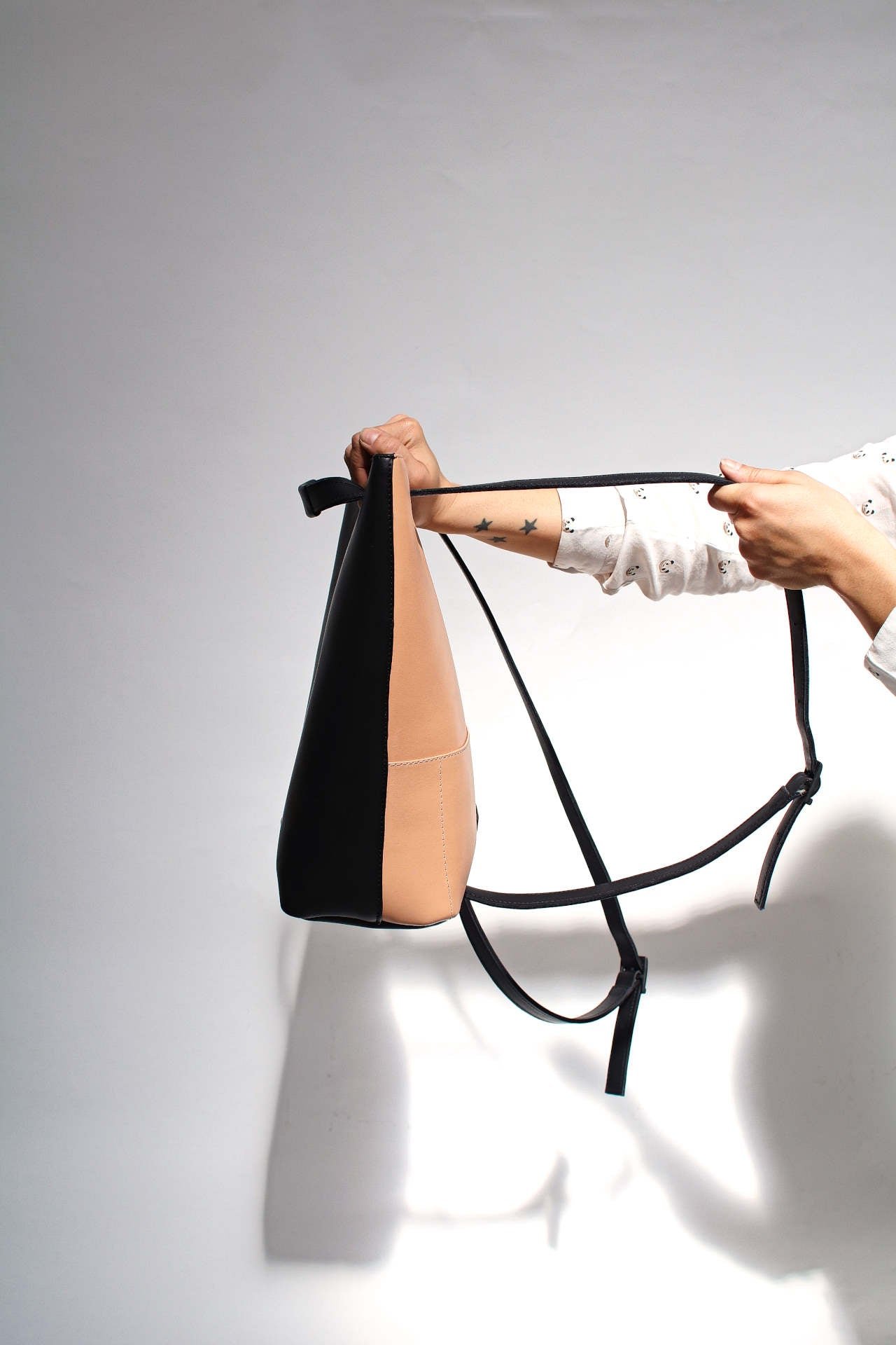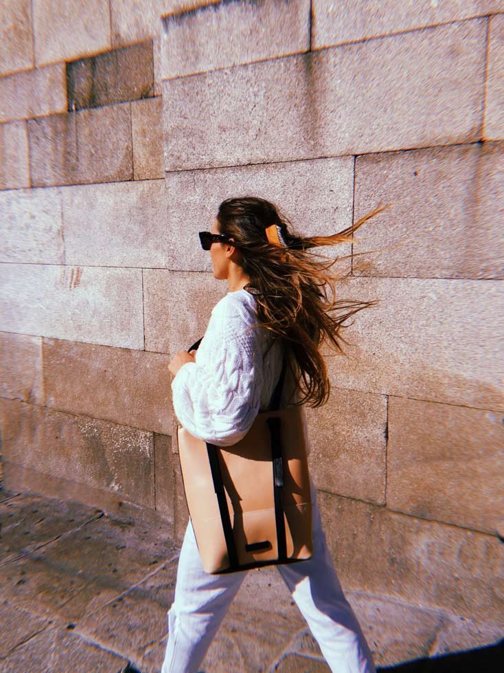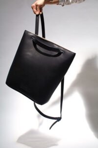 A tote or a backpack. Black premium sustainable metal-free tanned Leather. environmental-friendly. biodegradable and allergy-free. Back in Vegetable Tanned Leather (Nude) Adjustable straps. Outside and Inner pocket with zipper.  Dimensions:  37 x 34 x 12cm.  Adjustable Straps:  140cm – 80cm. Made in Portugal REF. MMSCTBP